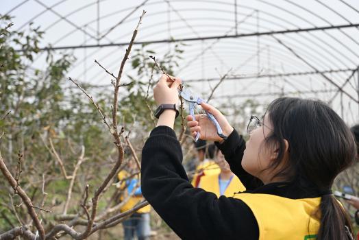 选手在修剪果树。