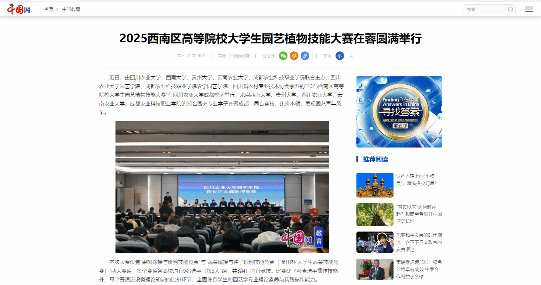 【外媒视角-中国网】2025西南区高等院校大学生园艺植物技能大赛在蓉圆满举行
