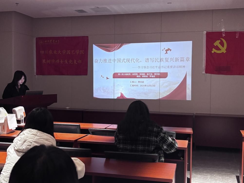 深入学习贯彻习近平总书记近期重要讲话精神,凝聚思想共识,激发实干动力2025年11月18日下午5点,四川农业大学园艺学院果树学硕士党支部在科技园B709举行专题组织生活会,党支部全体党员同志参加学习交流。