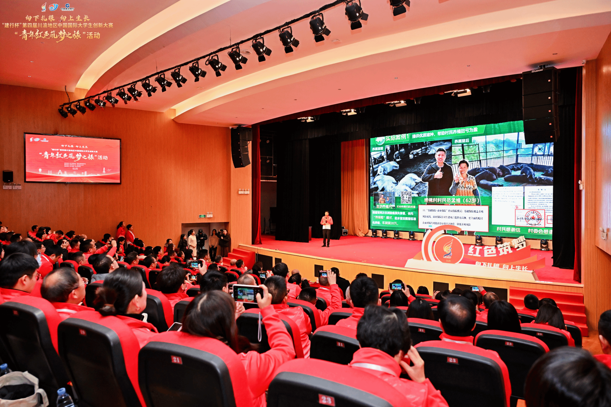 接着“建行杯”第四届川渝地区中国国际大学生创新大赛“青年红色筑梦之旅”活动正式启动。高校领导与地方市领导先后致辞,强调新时代青年应勇担使命,将专业所学与红色精神紧密结合,助力乡村振兴与现代化建设。在随后进行的川渝地区红旅国金项目路演中,各高校优秀团队展示了富有社会价值与创新性的实践成果。西南科技大学学子带来的音诗画表演《童谣里的惊天力量》,以艺术形式深情演绎了军民同心、奉献报国的感人故事,深深打动了在场师生。