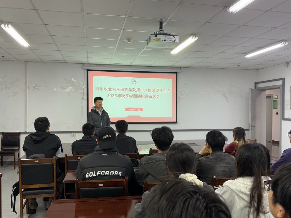 最后,学生会主席作总结讲话,对秋季学期团学工作的整体成效给予肯定,同时强调,全体团学骨干要以此次述职评议为契机,正视自身不足,吸纳评议意见,将前期专题培训所学运用到实际工作中,进一步强化责任意识、服务意识与协作意识,聚焦同学需求、突出园艺特色,不断提升工作质量与效能,推动学院团学工作再上新台阶。此次述职评议大会,不仅全面总结了秋季学期工作,更凝聚了工作共识、明确了前进方向,为后续团学工作的有序开展奠定了坚实基础。