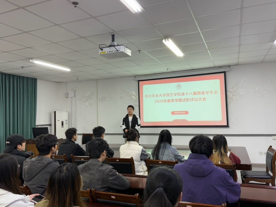 为全面复盘2026年春季学期团学工作,梳理成效、查摆不足,凝聚工作合力,推动团学工作高质量发展,进一步强化团学骨干的履职能力与责任担当,2026年3月18日,园艺学院团委学生会于学院会议室召开2026年春季学期述职评议大会,全体团学骨干参会,会议由学生会主席团主持。