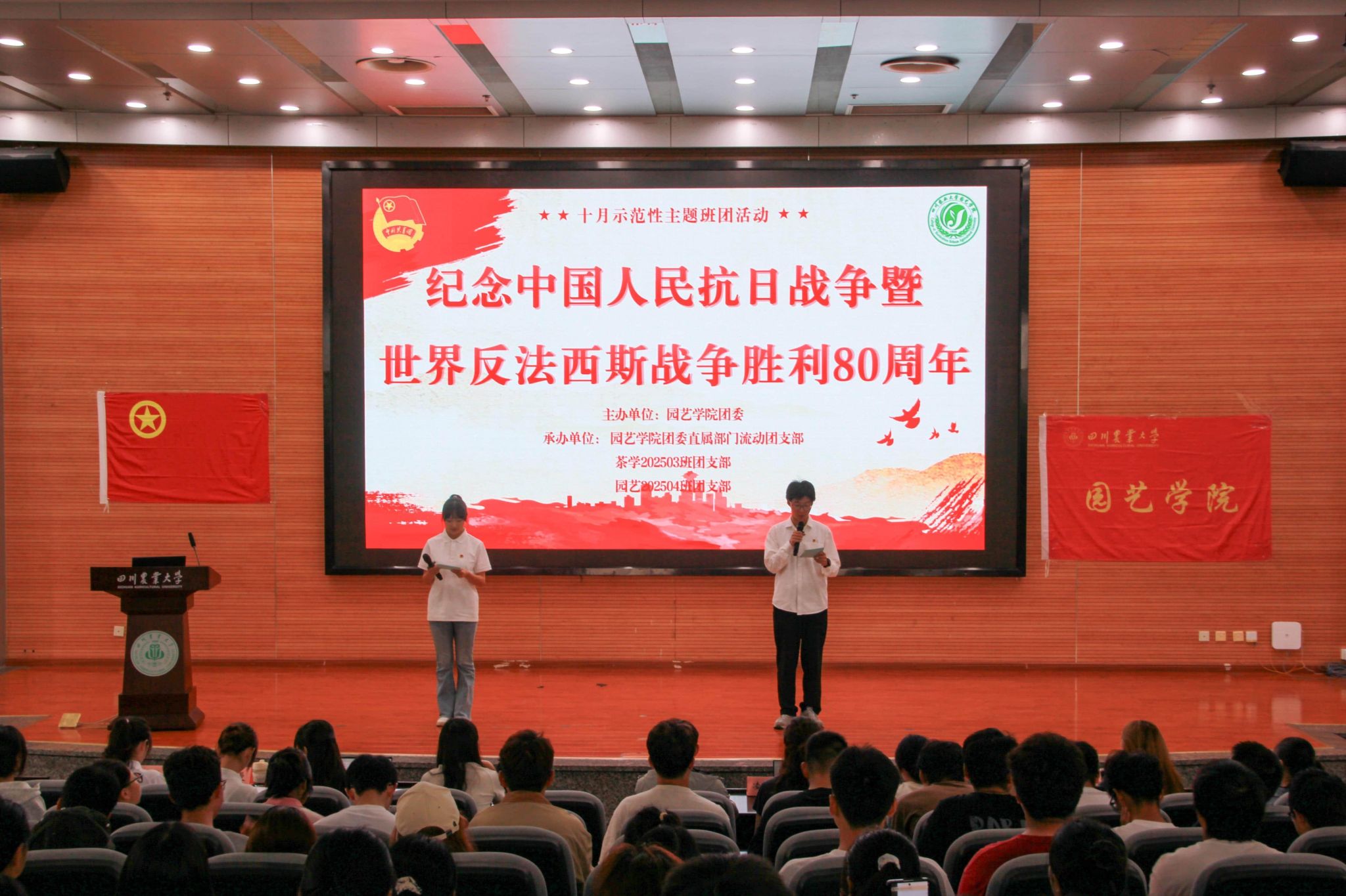 为深切缅怀革命先烈,传承红色基因,弘扬伟大抗战精神,引导青年学子在历史回望中坚定理想信念,在时代征程中勇担青春使命。10月9日,由园艺学院团委主办,园艺学院团委直属部门流动团支部、茶学2503、园艺2504团支部共同承办的“纪念中国人民抗日战争暨世界反法西斯战争胜利80周年”示范性主题班团活动在二教报告厅成功举行,2025级全体新生参加活动。