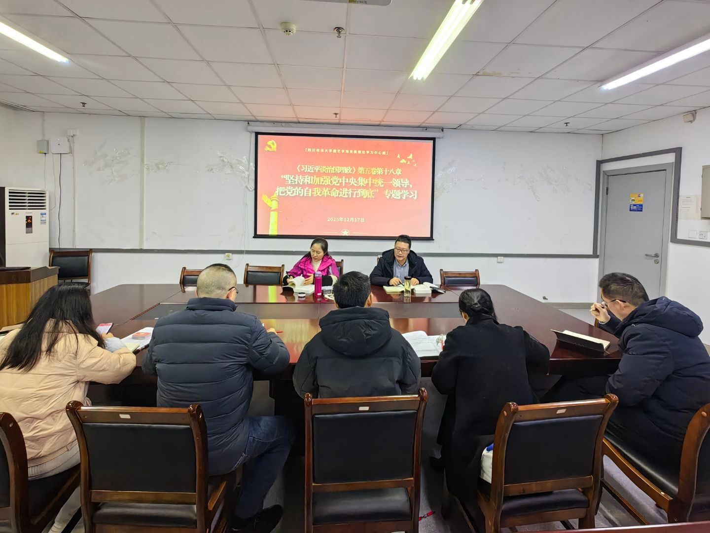 为深入学习贯彻习近平新时代中国特色社会主义思想,不断强化理论武装,提升党委领导班子思想政治建设水平和办学治校能力,12月17日下午,学院召开党委理论学习中心组学习会,集中学习《习近平谈治国理政》第五卷第十八章“坚持和加强党中央集中统一领导,把党的伟大自我革命进行到底”。学院两委委员参加会议,会议由学院党委书记主持。