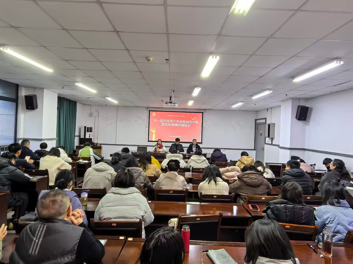 党委书记袁志香回顾了过去一年中,全院教职工在学院党委的坚强引领下,锐意进取,围绕“十四五”规划任务和一流学科专业建设,圆满完成学院各项事业和取得的成绩;高度评价了教职工们的辛勤耕耘与无私奉献,并深情寄语。袁志香还对学校十一届党委第八轮巡察的意见反馈向全院教职工做了简要介绍,并相关整改的整体工作的部署做了说明,希望全院教职工,尤其是各教工党支部要以巡察整改为契机,凝心聚力,携手并进,助推高质量党建引领学院高质量建设发展。此外,袁志香还就下一步如何落实好2025级园艺专业学生全员导师制和2026届毕业生工作做了强调。