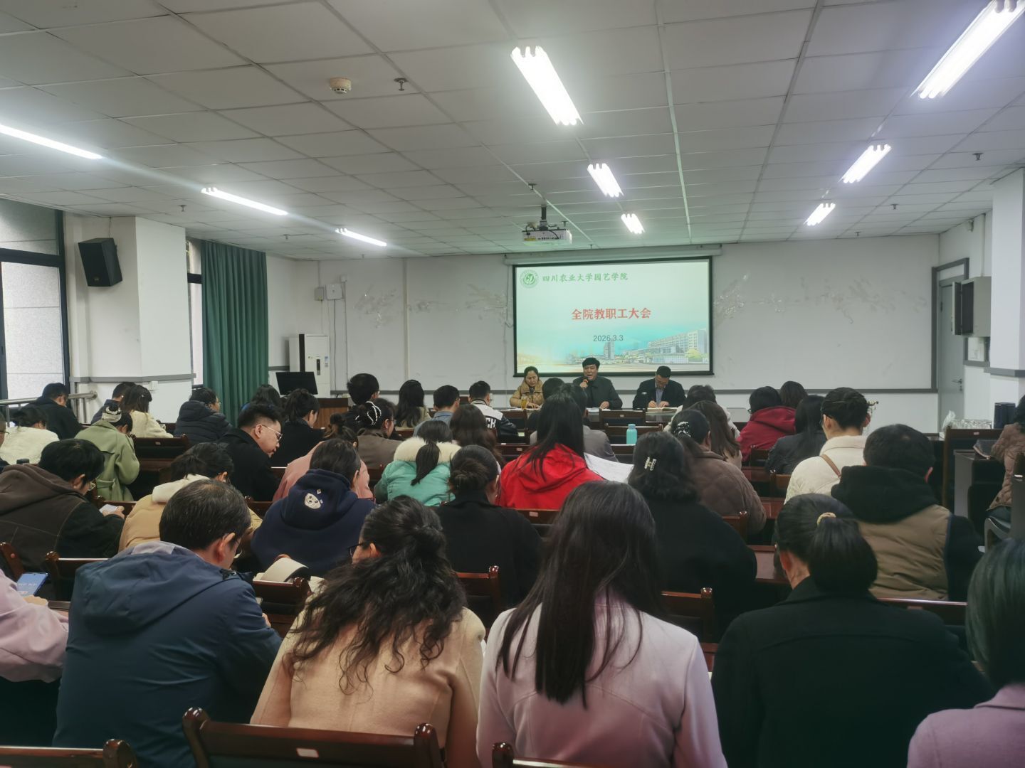 汪志辉围绕学校2026年度重点工作,结合学院情况,就学院2026年重点工作做了初步部署。他强调,今年是“十五五”开局之年,全体教职工要以“开局就是决战、起步就是冲刺”的劲头,立足园艺学科特色与区域产业需求,统筹抓好规划编制、整改提升与成果攻坚,确保“十五五”发展迈好第一步。要进一步优化学科建设,持续提升学科内涵与竞争力;严把人才培养关,狠抓学位论文质量;抓实就业攻坚,精准帮扶提高就业数量与质量;夯实党建与安全保证,守住安全稳定底线,推动学院各项事业再上新台阶。