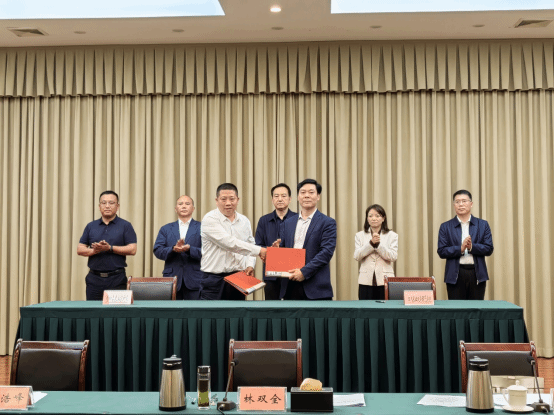 在随后的项目签约环节,学院汪志辉教授与青神县农业农村局针对柑橘新品种联合选育签订合作协议;胥伟博士与洪雅县瓦屋春雪茶叶有限公司围绕新茶饮产品开发签署意向合作协议。林双全、卢艳丽、李德海、严明宇、青神县政府分管负责人、洪雅县政府分管负责人见证我院两项合作协议签署。