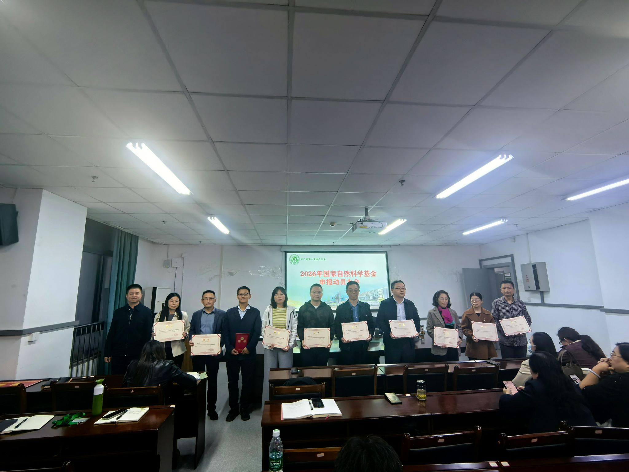 表彰结束后,杜俊波对学院老师申报2026年国家自然科学基金进行专项辅导。杜俊波结合全校基金申报及获批整体情况的分析,从选题优化、材料打磨、跨学科协作等方面,对学院2026年度基金申报工作提出针对性建议。
